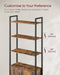 AUSLAUF VASAGLE | 6-Tier Bookcase, Tall Bookshelf with Door, Metal Frame, Adjustable Shelves, 24 x 60 x 159.5 cm, Living Room Bedroom, rustikal braun und Ink Black LLS133K01