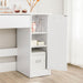 Ein ideales Geschenk Wenn Sie noch nach einem Geschenk für Ihre Liebsten suchen, wird dieser Schminktisch das Richtige sein. Der weiße Farbton, die schlichte Tischoberfläche und das durchdachte Design werden Ihren Freunden oder Ihrer Familie bestimmt ein Lächeln ins Gesicht zaubern. Geheimer Kosmetikgarten Vervollständigen Sie Ihr Make-up und erleichtern Sie Ihre morgendliche Routine mit diesem Schminktisch. Die Schublade bietet ausreichenden Platz für Lidschatten, Rouge und andere Accessoires. Das Fach auf der rechten Seite kann für Toner, Serum und Creme sein. Gestalten Sie Ihre Kosmetikabteilung ganz nach Ihren Vorstellungen und verlassen Sie Ihr Haus topgestylt!