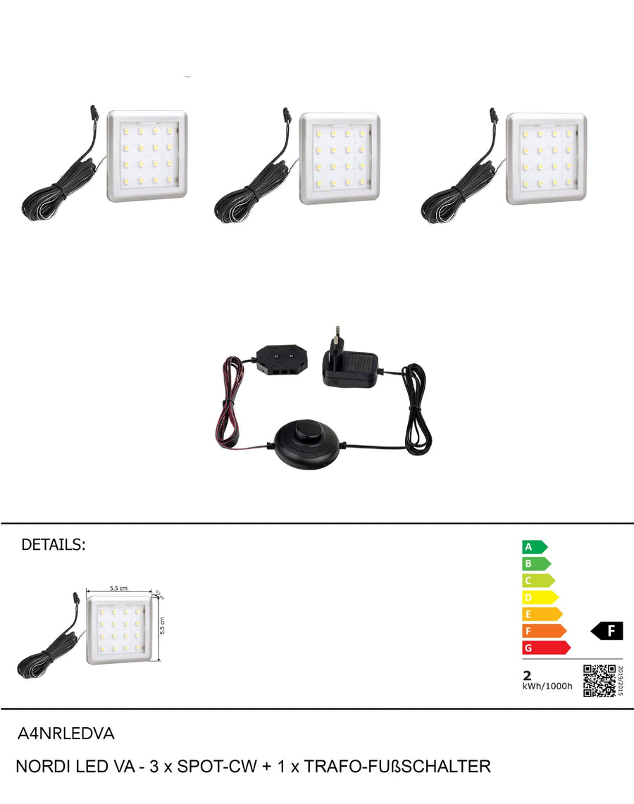 Hometrend | NORDI LED VA-3xSPOT-CW+1xTRAFO-FUßSCHALTER