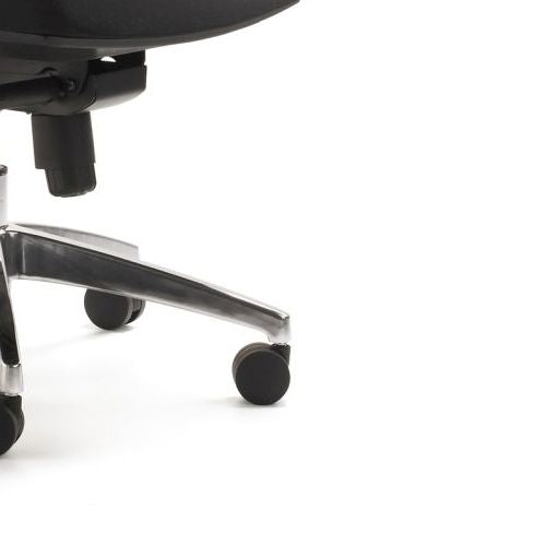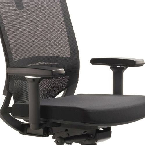 StoffpolsterSitz: und Netzrücken schwarz, höhen- und neigungsverstellbare Kopfstütze, höhenverstellbare Lendenwirbelstütze, höhen- und tiefenverstellbare, schwenkbare Armlehnen mit PU-Softpad Auflagen, Synchronmechanik mit individueller Gewichtseinstellung und Sitztiefenverstellung, stufenlose Höhenverstellung durch Gasfeder, Alu-Fußkreuz poliert, inkl. große Rollen für Teppichböden, Sitzhöhe 44 - 54 cm. Stuhl TÜV Rheinland GS geprüft. 3 Jahre Garantie.