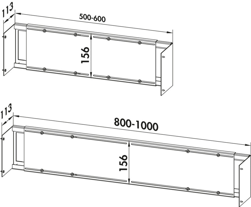 Montagerahmen Stahlblech, weiß (RAL 9010), teleskopierbar.