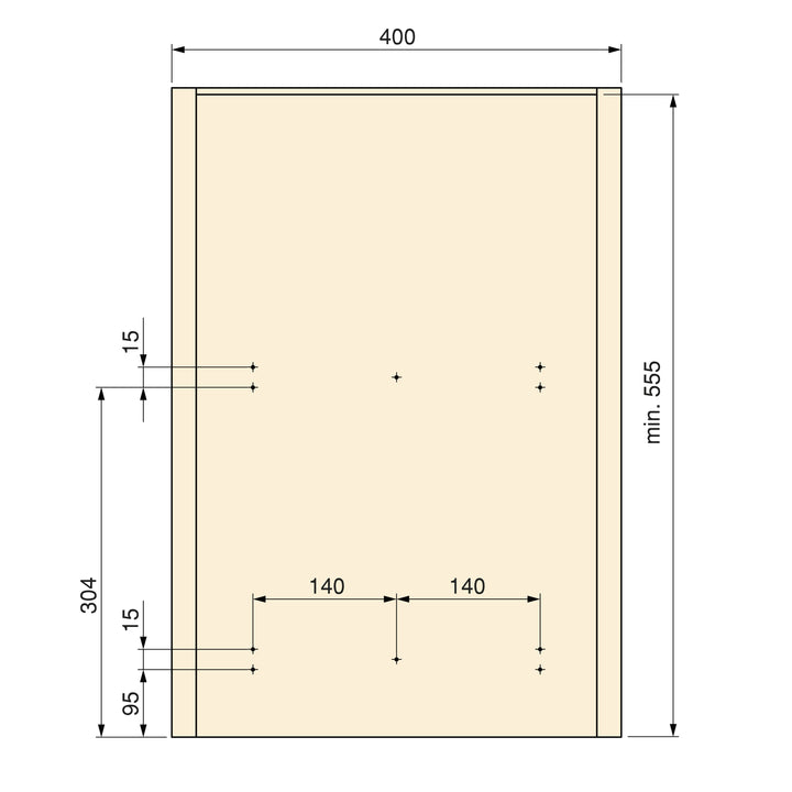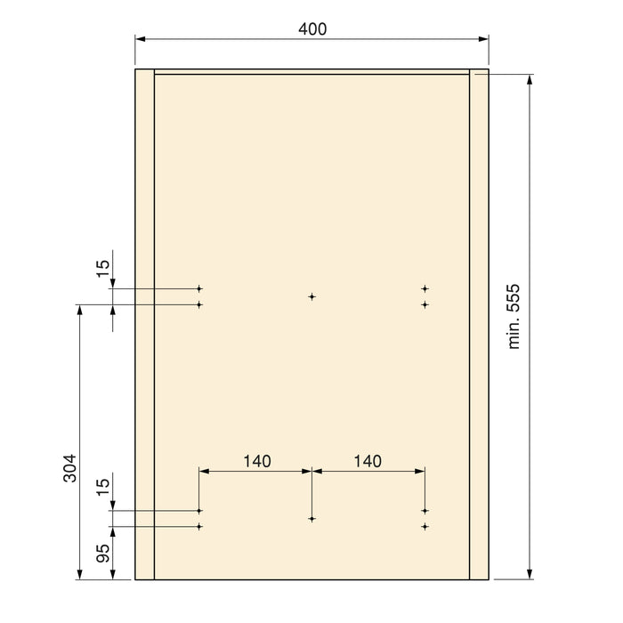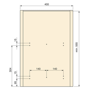 - Sie gilt für den Einbau in Module mit Mindestinnenmaßen von 365 mm Breite, 535 mm Tiefe und 530 mm Höhe.