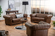 Das Polstermöbelset Bridgeport besteht aus einem Sofa 3-Sitzer, Sofa 2-Sitzer und Sessel. So holen Sie den englischen Chesterfield Stil in Ihr Wohnzimmer. Die Garnitur wurde mit viel Liebe zum Detail gearbeitet, wodurch sie einen markanten und unverwechselbaren Look erhält. Mit handwerklicher Wertarbeit wurden die aufwändigen Knopfheftungen im Rücken, an der Sitzrampe und den geschwungenen Armlehnen gefertigt. Die Rückseite ist mit Leder bezogen und ebenso verarbeitet, daher kann die Gruppe frei im Raum platziert werden und individuelle Raumkonzepte umgesetzt werden. Neben den optischen Details punktet die Couch zudem mit ihrem Sitzkomfort. Die komfortable Wellenunterfederung, die hochwertige Polyätherschaum-Polsterung und das stabile Holzgestell laden zum Zurücklehnen und Entspannen ein._x000D_ Maße der Möbel (BxTxH):_x000D_ Sessel: 110 x 98 x 76 cm_x000D_ 2-Sitzer: 172 x 98 x 76 cm_x000D_ 3-Sitzer: 200 x 98 x 76 cm