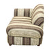 Vollpolsterrecamiere mit Chatosenseitenteil im Landhausstil. Romantisch verspielt gibt diese wunderschöne Recamiere dem Raum eine besondere Note. Das Streifenmuster unterstreicht den wohnlichen Akzent. Die dunklen Buchefüße runden das Gesamtbild ab. Der Rücken ist mit Originalstoff bezogen, somit ist die Recamiere frei im Raum stellbar. Die Füße sind zur einfachen Selbstmontage.