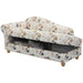 Klassische Recamiere im romantischen Landhausstil. Der florale Stoffbezug ist ein toller Eye-Catcher und verleiht der Recamiere einen verspielten Look. Das geschwungene Armteil mit Chatose ist rechts oder links erhältlich. Im praktischen Stauraum unterhalb der Sitzfläche, der sich mit nur einem Handgriff öffnen lässt, können Decken und Kissen verstaut werden. Bequemer, mittelfester Sitzkomfort mit Federkern. Die Kugelfüße aus massiver Buche sind farblich passend zum Stoffbezug erlefarbig lackiert und zur einfachen Selbstmontage.