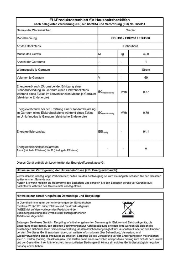 Oranier | EBH380 | Einbauherd