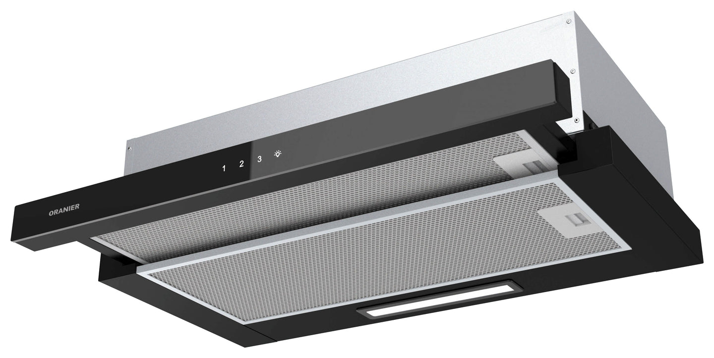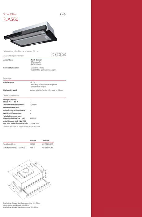 Schublüfter, 3-stufig, Frontblende Schwarzglas, 60 cm, u. v. m..