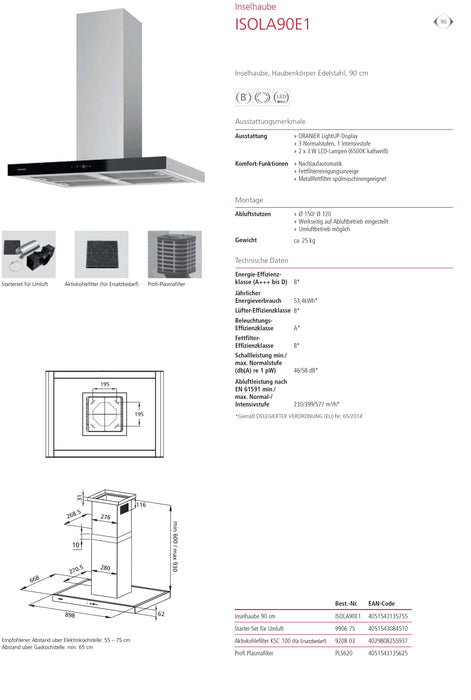 Oranier | ISOLA90E1 | Dunstabzugshaube