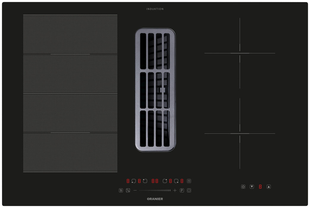 Kochfeldabzug mit Flächeninduktion und Multi-Slider, 4 Kochzonen, 4-fach Booster, 4-fach Timer, Brückenfunktion, Grillfunktion, Warmhalte- / Sous-V...