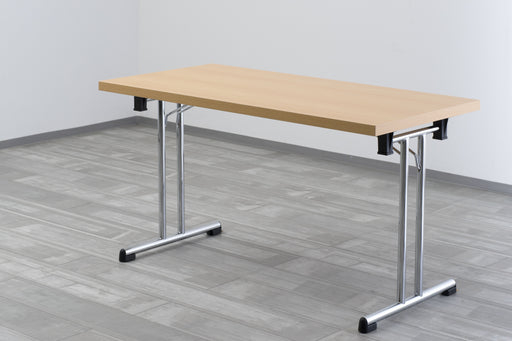 Klapptisch KL14, 138x69 cm Platte: Buche, 38 mm dick, 2 mm ABS-Kante Rechteckform verchromt, leicht bedienbare Klappmechanik Arbeitshöhe 73,5 cm h...