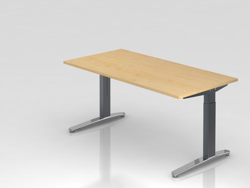 Schreibtisch XB16, 160x80cm Platte: Ahorn, 25mm dick, ABS Dickkante C-Fuß Gestell Graphit Arbeitshöhe 68-85cm höheneinstellbar, Rastung 1 cm Säule...