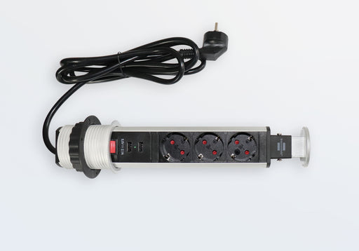 Steckdosentower Aluminium versenkbar 3 VDE Steckdosen 45° 2 USB-Charger, Typ A 2 m Netzkabel, IP 20, Funktionsanzeige max. 2100 mA für schnelles A...