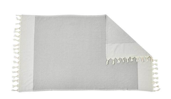 Das leichte Hamamtuch in zarten Pastelltönen besticht duch sein dezentes Design und seine schicken, handgeknoteten Fransen. Das Tuch ist vielfältig einsetzbar, wird mit jedem Waschen weicher und die Baumwollfasern werden mit jeder Benutzung geschmeidiger und saugfähiger. Das Tuch fühlt sich einfach toll auf der Haut an!