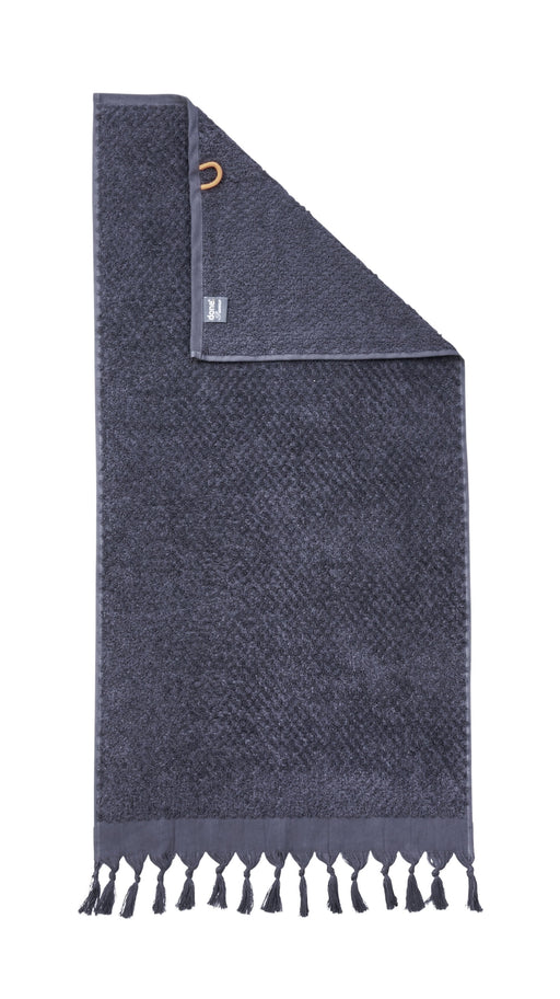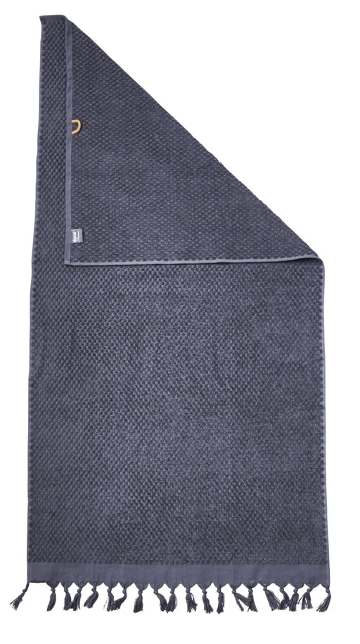 Einfarbiges Hamamtuch mit sommerlichem Hoch-Tief gewebten Motiv und offenen Fransen. Aus hochwertiger Baumwolle mit weicher, saugfähiger Frottierrü...