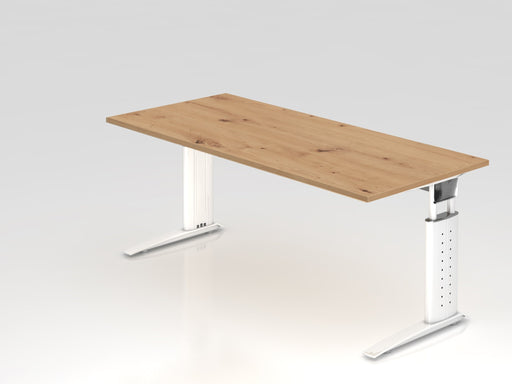 Schreibtisch US19, 180 x 80 cm Platte: Asteiche, 25 mm dick, 2 mm ABS-Kante Rechteckform C-Fuß-Gestell in Weiß Arbeitshöhe 68-86 cm,werkzeuglos ei...