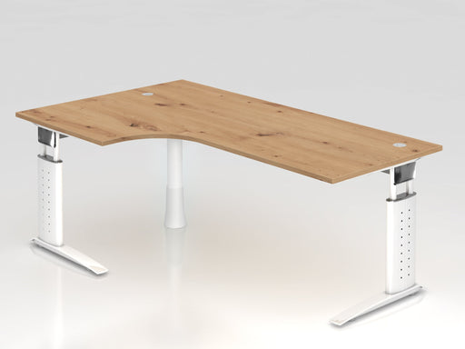 Schreibtisch US82, 200 x 120 cm Platte: Asteiche, 25 mm dick, 2 mm ABS-Kante Winkelform 90°, links oder rechts montierbar C-Fuß-Gestell in Weiß A...