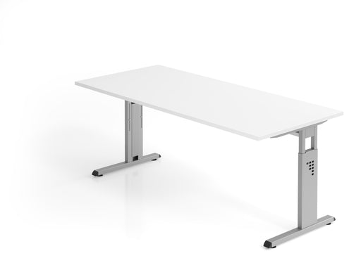 Schreibtisch OS19, 180 x 80 cm Platte: Weiß, 25 mm dick, 2 mm ABS-Kante Rechteckform C-Fuß-Gestell Silber (ähnlich RAL 9006) Arbeitshöhe 65-85 cm ...
