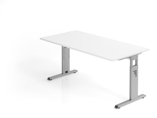 Schreibtisch OS16, 160 x 80 cm Platte: Weiß, 25 mm dick, 2 mm ABS-Kante Rechteckform C-Fuß-Gestell Silber (ähnlich RAL 9006) Arbeitshöhe 65-85 cm ...