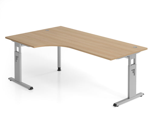Schreibtisch OS18, 180 x 100/80cm Platte: Eiche, 25 mm dick, 2 mm ABS-Kante Freiform, links oder rechts montierbar C-Fuß-Gestell Silber (ähnlich R...