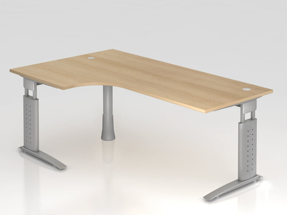 Hammerbacher | Winkeltisch C-Fuß 200x120cm 90° Eiche / Silber