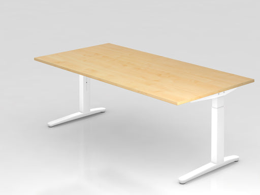 Schreibtisch XB2E, 200 x 100 cm Platte: Ahorn, 25 mm dick, 2 mm ABS-Kante Rechteckform C-Fuß-Gestell Weiß Alu-Kufe poliert Arbeitshöhe 65-85 cm hö...