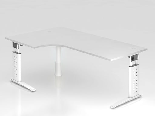 Schreibtisch US82, 200 x 120 cm Platte: Weiß, 25 mm dick, 2 mm ABS-Kante Winkelform 90°, links oder rechts montierbar C-Fuß-Gestell in Weiß Arbei...