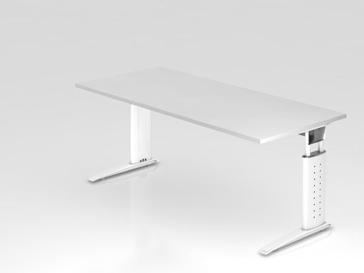 Schreibtisch US19, 180 x 80 cm Platte: Grau, 25 mm dick, 2 mm ABS-Kante Rechteckform C-Fuß-Gestell in Weiß Arbeitshöhe 68-86 cm,werkzeuglos einste...