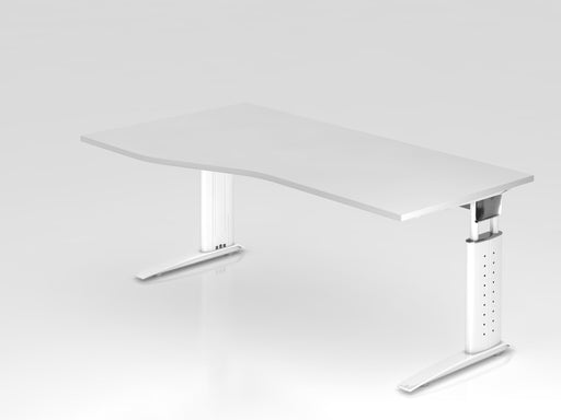 Schreibtisch US18, 180 x 100/80cm Platte: Weiß, 25 mm dick, 2 mm ABS-Kante Freiform, links oder rechts montierbar C-Fuß-Gestell in Weiß Arbeitshöh...