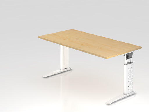 Schreibtisch US16, 160 x 80 cm Platte: Ahorn, 25 mm dick, 2 mm ABS-Kante Rechteckform C-Fuß-Gestell in Weiß Arbeitshöhe 68-86 cm,werkzeuglos einst...