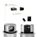 Vertikal Push abnehmbare Mehrfachsteckdose durchmesser 100mm, 3 Schuko-Stecker, 1 USB Typ A, 1 USB Typ C, Stahl Kunststoff, Grau metallic