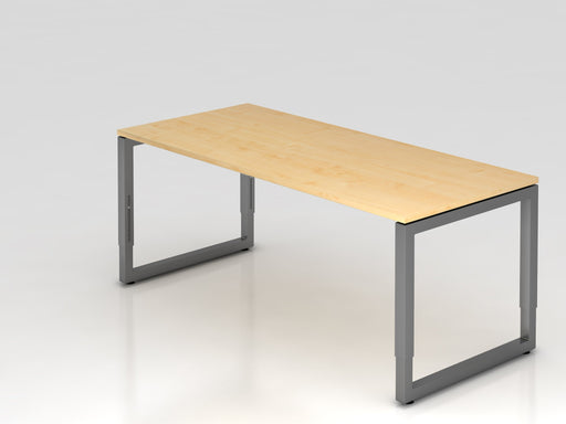 Schreibtisch US19, 180 x 80 cm Platte: Ahorn, 25 mm dick, 2 mm ABS-Kante Rechteckform C-Fuß Gestell in Silbergrau Arbeitshöhe 68-86 cm,werkzeuglos...