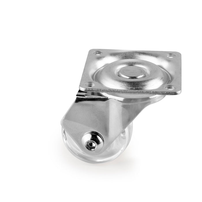 Emuca | Lot von 4 Rollen Slip 3 transparent, Montageplatte, Durchmesser 35mm, Stahl Kunststoff