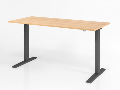 Schreibtisch XMKA19, 180 x 80 cm Platte: Buche, 25 mm dick, ABS-Dickkante Rechteckform C-Fuß Gestell in Graphit, mit Tastschalter Arbeitshöhe 70 -...