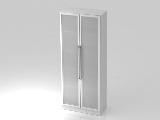 Glastürenschrank 6100G SG, 5 OH Korpus: Weiß/Front:Rahmen Silber/Milchglas 80 x 42 x 200,4 cm (BxTxH) Drehtüre 5 OH, Öffnungswinkel 95° nicht absc...