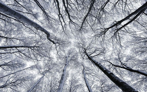 Perspektivenwechsel – der Blick nach oben offenbart die Schönheit des Winterwaldes. Deutsches Qualitätsvlies (150 g/m²) mit Deckstrich (versiegelte...