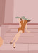 An einem lauen Sommerabend sitzt eine Dame auf den noch von der Sonne aufgewärmten Treppen eines Schauplatzes und rückt sich ihren opulenten Hut zurecht. Ein sinnliches Wandbild für ein Ambiente mit Stil.