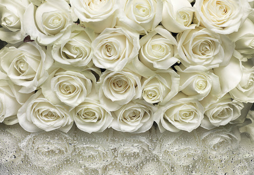 Weiße Rosen - Ein Symbol für Reinheit, Treue und Unschuld. Deutsches Spezial-Fototapetenpapier, geruchsfrei, glatt und umweltfreundlich. FSC®-zerti...