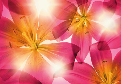 Ein Gefühl wie im Sommer – Freche Sonnenstrahlen blitzen durchs Blütenmeer. Fototapete ''Summer Sun'' von Komar. Größe 368 x 254. Deutsches Spezial...
