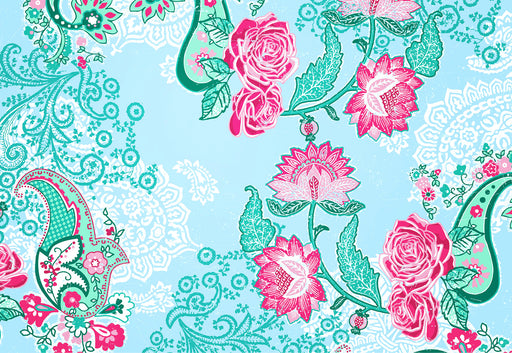 Blumig trifft Flohmarkt: Großflächige Komposition aus Rosen und Paisley. Das gibt's nicht von der Stange. Deutsches Spezial-Fototapetenpapier, geru...