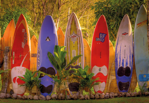 Mauis Surfbretter in der abendlichen Sonne spiegeln das ganz besondere Gefühl dieser überwältigenden Insel in Ihrem Zuhause wieder. Deutsches Spezi...