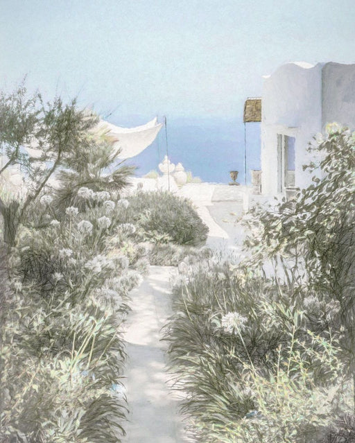 So geht Urlaub: Das tiefblaue Meer bis zum Horizont, das erfrischende Grün der exotischen Pflanzen vom Wegrand und ein zierliches Haus im mediterra...