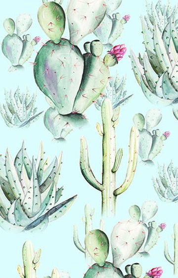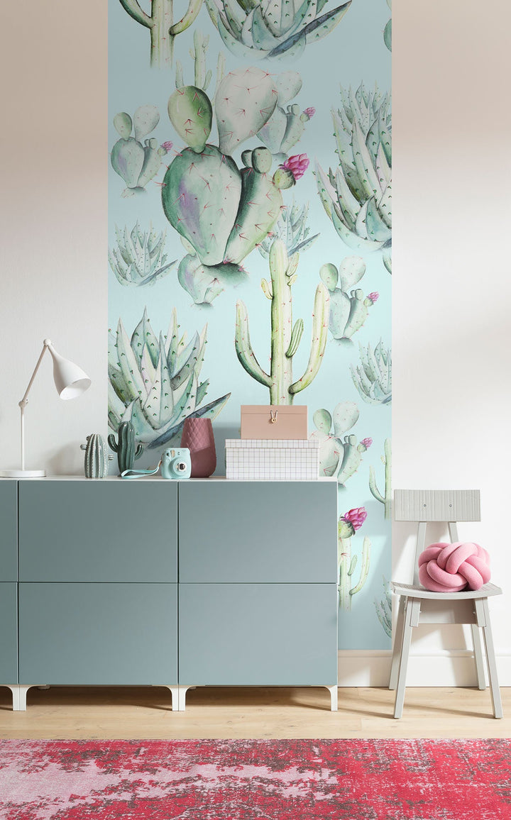 Vlies Fototapete | Cactus Blue Panel | Größe 100 x 250 cm