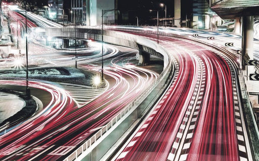 Feel the Speed! Feine Pinselstriche erschaffen ein urbanes Lichtermeer. Deutsches Qualitätsvlies (150 g/m²) mit samtiger Textiloptik, formstabil, g...