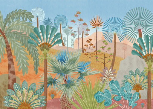 Das Tapetendesign schreit nach purer Lebensfreude und guter Stimmung. Die in Blautönen gehaltenen Bäume und Blätter sind über dem gesamten Motiv ve...