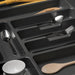 Besteckhalter für Vertex- und Concept-Küchenschubladen mit geradem Design und großer Aufbewahrungskapazität für Besteck und andere Küchenutensilien, um den Platz optimal zu nutzen. Zur Verwendung mit Schubladen, die auf Modulen mit einer Breite zwischen 400 mm und 1000 mm, einer Tiefe von 500 mm und einer 16 mm dicken Spanplatte montiert sind. Aus weißem und anthrazitgrauem Kunststoff.