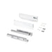 Die Küchen- und Badschublade Protone ist als Kit mit dem gesamten zur Montage erforderlichen Zubehör erhältlich. Zudem besticht sie durch ihre enorme Traglast von bis zu 30 kg pro Schublade. Das Kit enthält Führungen mit vollständigem Auszug und sanftem Verschluss, 1 Satz Haken und Seitenelemente in den Farben weiß oder anthrazit. Sie benötigen lediglich eine Platte, die auf die Maße der Schublade abgestimmt ist.