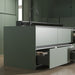 Die seitlichen Metallrippen sind aus Stahl mit grauer, anthrazitgrauer Lackierung gefertigt, und ermöglichen die Einstellung der Schubladenfront mit 3D-Frontverstellung: vertikal über einen Exzenter von ±2 mm, horizontal ±1 mm, Neigung -1,5/+4 mm. Die Führungen sind Vollständigenauszug mit weichem Schließen und einer Tragfähigkeit bis 60kg.
