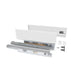 Kit für Küchen- und Badschublade Vertex mit allen notwendigen Elementen für die Montage. Es ist die optimale Lösung für Ihre Küchen-, Bad- oder Schränke mit einem eleganten Design in Anthrazitgrau und Weiß. Jedes Kit besteht aus allen Elementen, die für die Montage einer Außenschublade mit einer Höhe von 93 mm in Modulen mit einer Seitendicke von 16 mm erforderlich sind. Es enthält: zwei Seitenschienen, einen Satz weicher Schließführungen, einen Satz Verkleidungsabdeckungen und die Befestigungselemente für die Schubladenfront.