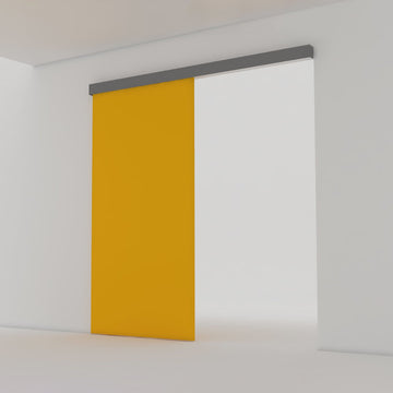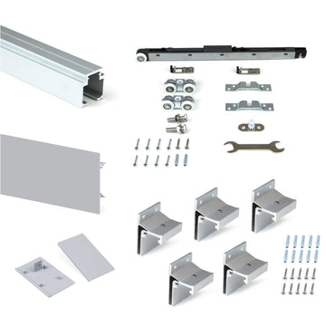 Die obere Schiene, durch die die Türwagen gleiten, und die vordere Abdeckung zum Verbergen des Systems besteht aus 2 Metern eloxiertem Aluminium.