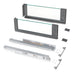 Enthält Führungsschienen, einen Satz Rippen mit Glasseiten, einen Satz Abdeckkappen und einen Satz Fronthaken für Außenschubladen.